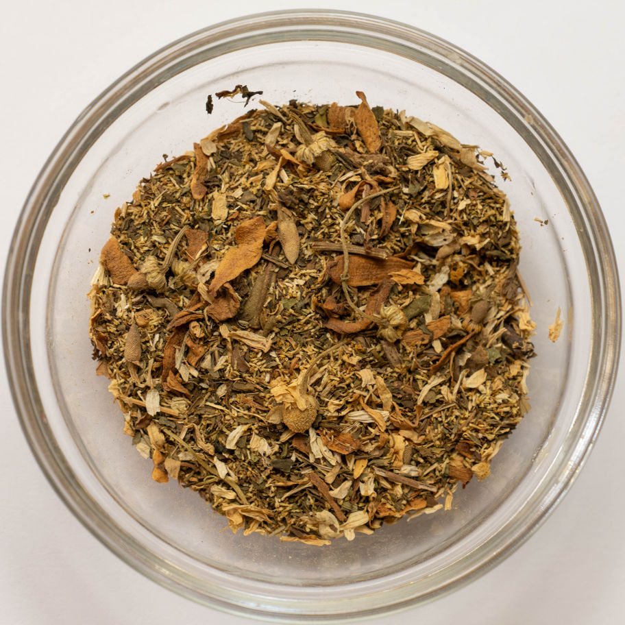 Indulge in our artisan-crafted tea blend, meticulously curated with a mix of herbs, fruits, seeds, and compounds recommended by functional nutrition experts. This blend is designed to relax muscles, reduce anxiety, and promote overall well-being.